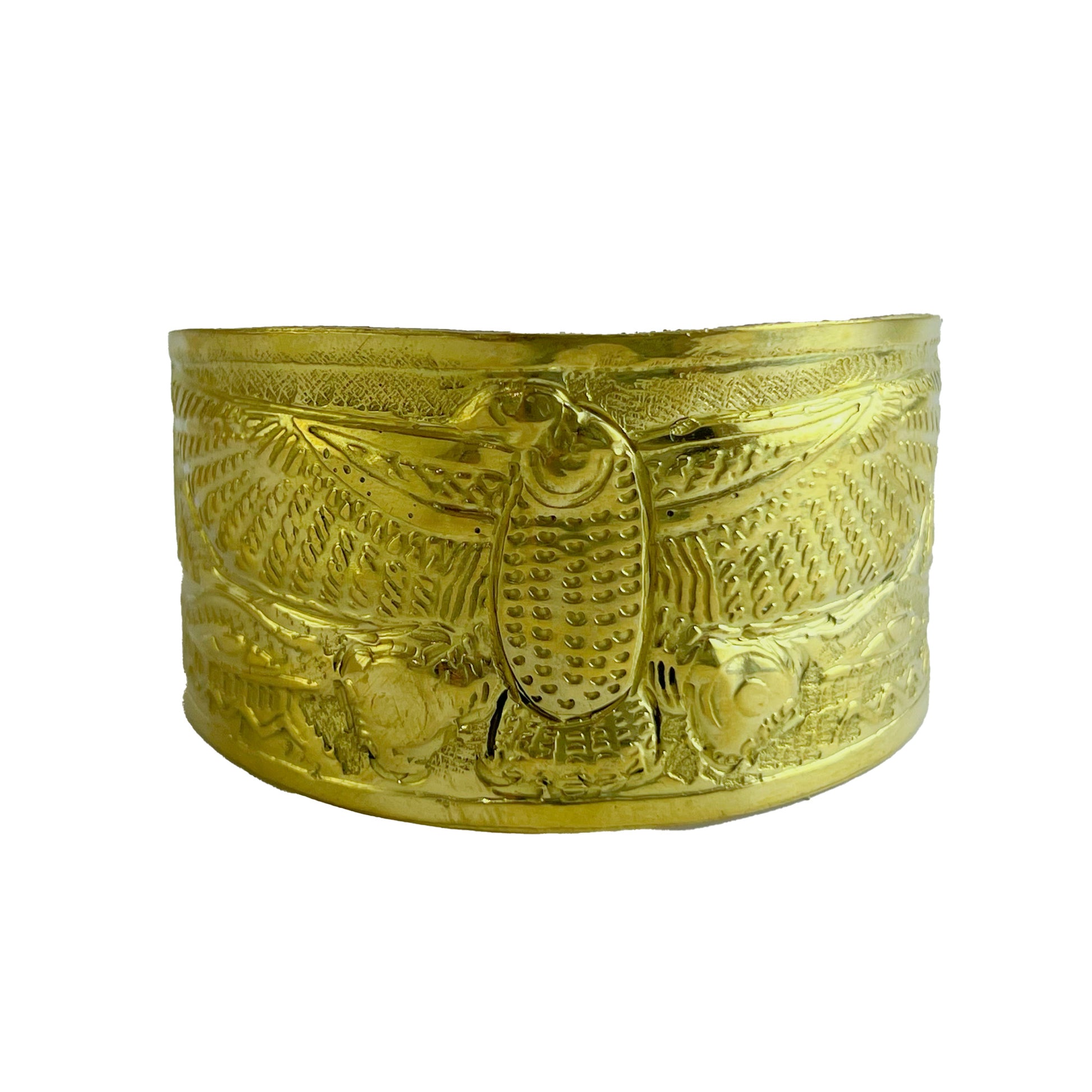 Celebrate the essence of ancient Egyptian symbolism with this stunning brass cuff featuring the sacred scarab. Handcrafted with intricate engravings, this bracelet is a tribute to renewal and vitality, blending historical significance with timeless elegance.